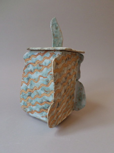 2024Doos gemaakt als sculptuur, gedecoreerd met verschillende glazuren.